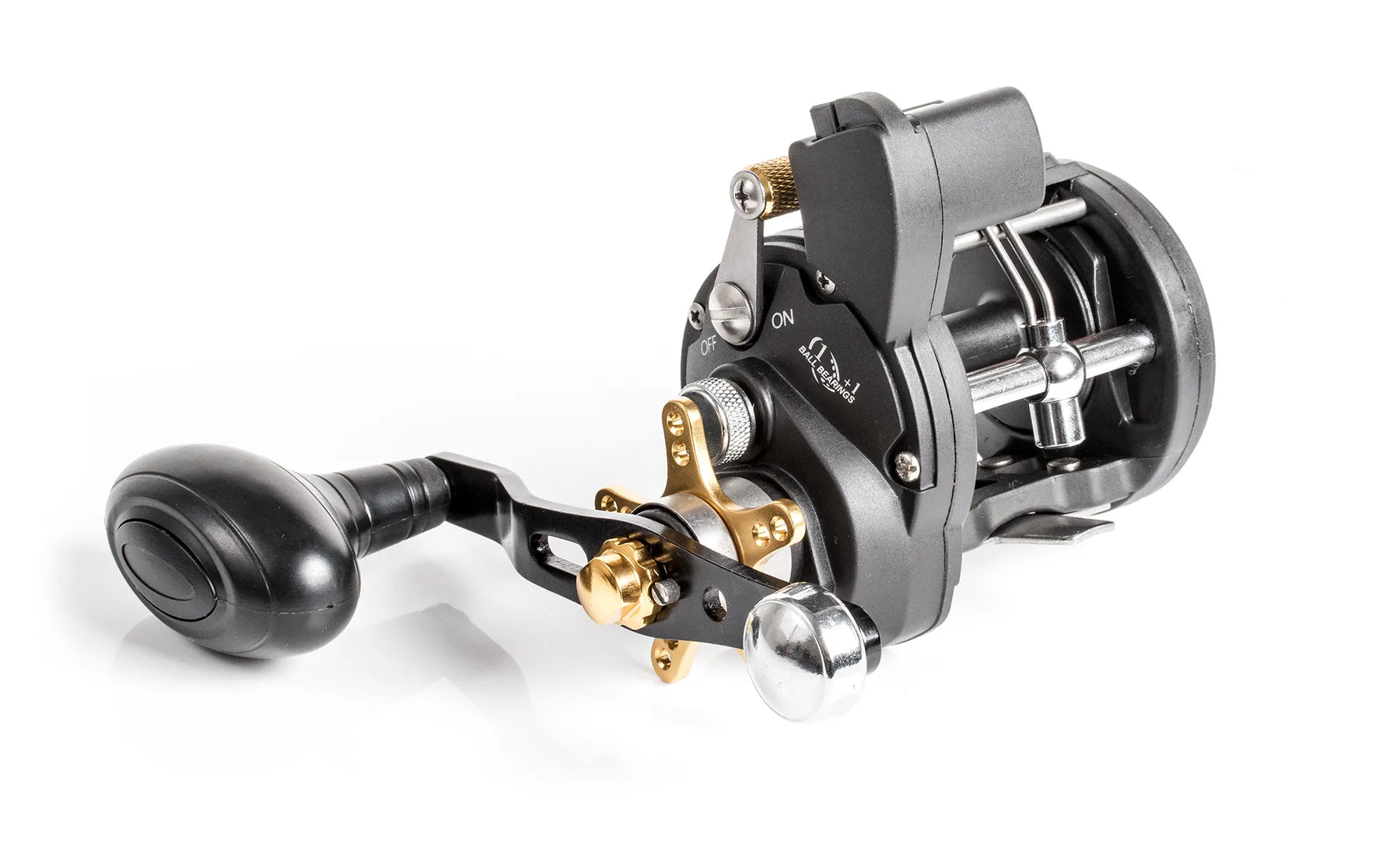 Versatile reel in easy maintenance graphite body and spool. Level wind, big handle and powerful braking system. Suits both sea angling and trolling. 2 Ball Bearings and instant anti reverse and line counter.